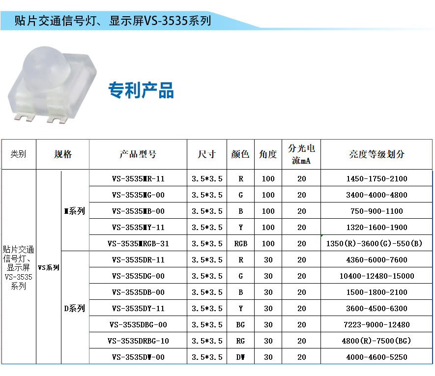 貼片交通信號燈、顯示屏VS-3535系列