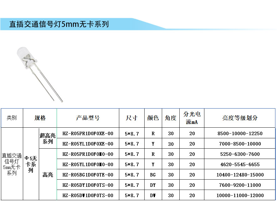 直插交通信號燈5mm無卡系列